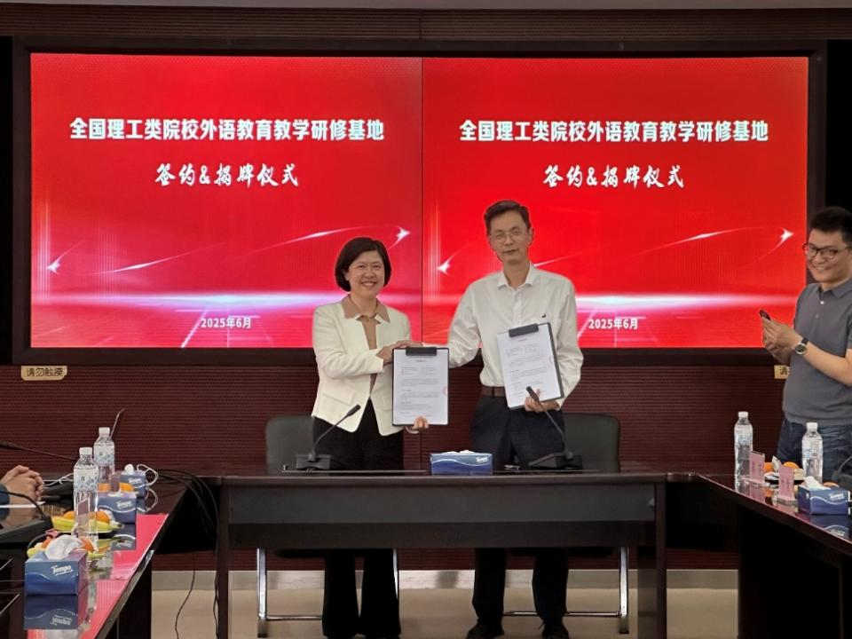 座談会の開始前に、劉芹院長と孫玉党委書記が協定書に調印するとともに、「全国理工系大学外国語教育研修センター」の除幕式が行われた。同センターでは定期的に教学研修活動を開催し、理工系大学における外国語教育の革新モデルを模索することで、全国の外国語教育改革に対してモデルを提供する役割を果たす。