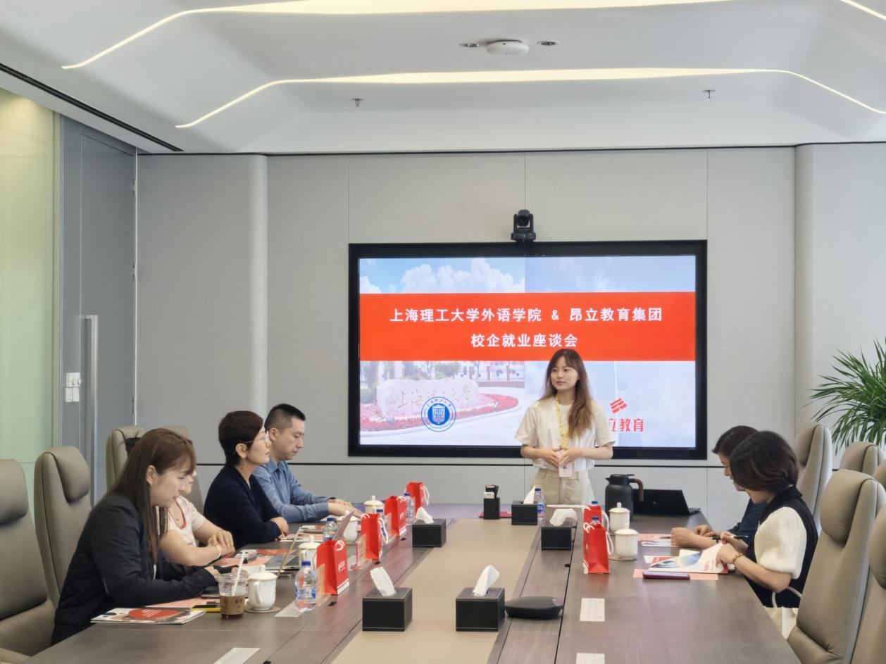 昂立教育グループの教師研修マネージャーがそれに続き、グループの発展の歩み、業界におけるリーダーシップ、多角化した業務配置を詳細に紹介し、上海理工大学で行われた2025年度新卒向けの求職求人会における豊かな協力成果を特にシェアしてくれた。それとともに、昂立教育の教学上の強み、体系化された教師研修システム、そして様々なキャリアアップパスを重点的に紹介し、学院卒業生に多くの就職選択肢を提供してくれた。