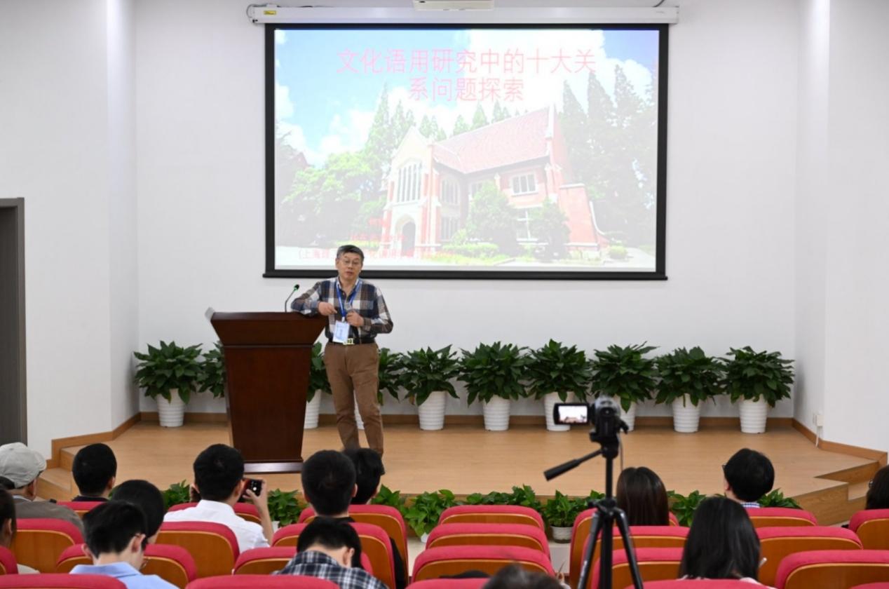 今回のシンポジウムでは9名の著名専門家による基調報告が行われた。4月19日午前、華東師範大学の何剛教授は「文化語用研究における十大関係問題の探求」をテーマとして講演し、十の側面から文化語用学において注目すべき重要課題を多角的に論じ、科学的な文化語用学体系の構築に向けた明確な指針を提示した。続いて、電子科技大学の李憲博博士は「計算文化語用学研究序説」と題し、計算語用学と文化語用学を融合させる可能性とその方法論について論じ、コンピューターサイエンスの文化語用学研究への応用についての展望を描き出した。さらに北京航空航天大学の任偉教授は「ソーシャルメディアにおける自己称賛の文化語用メカニズム」について講演した。中国における世代間・性別比較、そして異文化間比較の観点から、SNSで用いられる自己称賛のストラテジーに文化要因が与える影響を明らかにし、デジタル時代における文化的アイデンティティ構築を理解するための新たな視座を提供した。