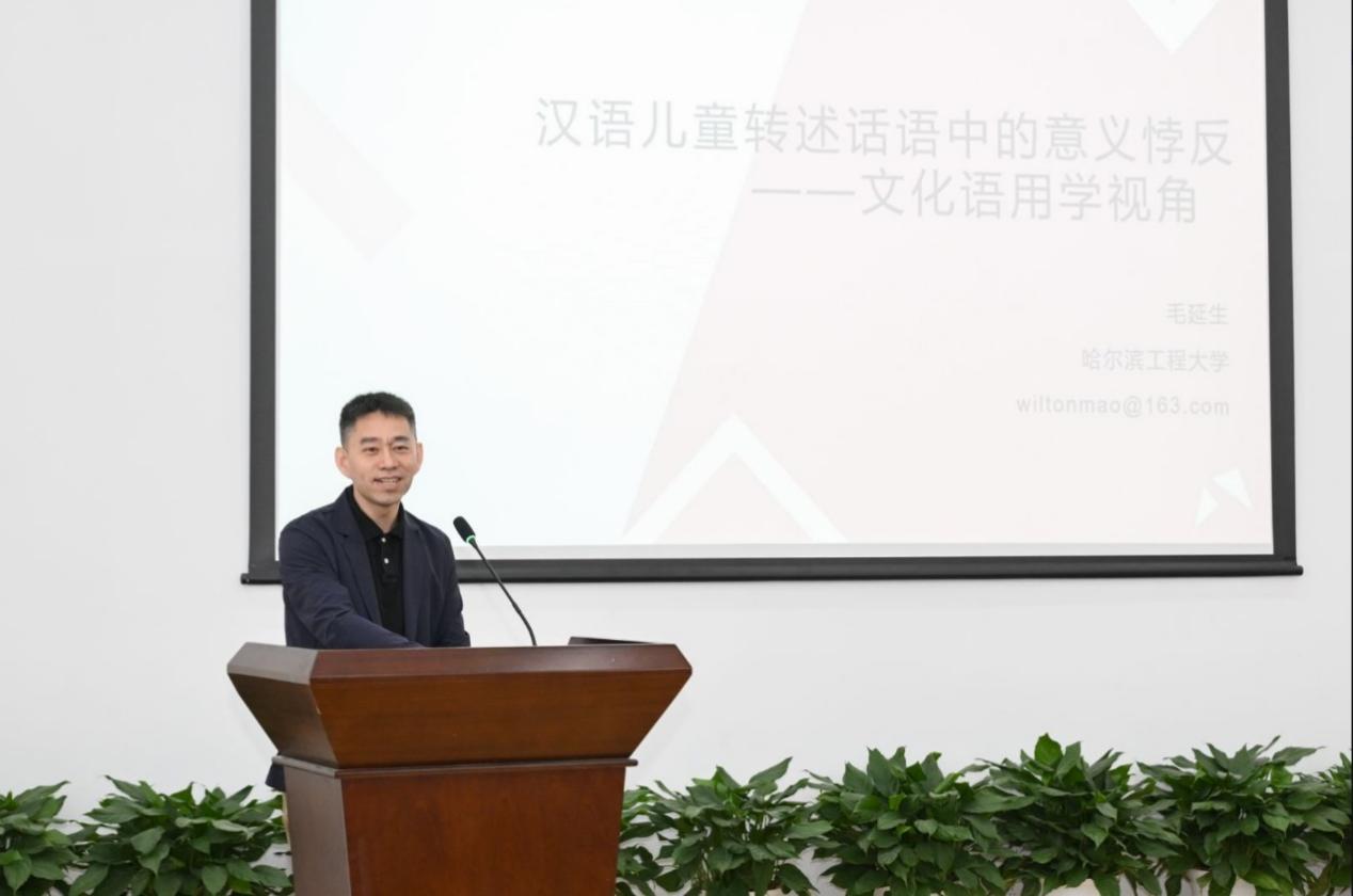 4月20日午前、広東外国語外贸大学の馮光武教授は「文化知識と語用論的推論」をテーマとする講演で、聞き手を中心とした、文化的知識に基づく語用論的推論モデルを提案し、語用論研究に新たな視点を提供した。黒竜江大学の黄萍教授は「文化語用論の視点から見た高齢者の言語生活の多角的解釈」をテーマとする講演で、文化語用論の視点から高齢者の言語生活を考察し、人口の高齢化に伴う言語衰退や言語障害の問題に対処するための文化的・語用論的なアプローチを提供した。ハルビン工程大学の毛延生教授は「中国語児童の転述発話における意味の逆説―文化語用論の視点から」をテーマとする講演で、中国語児童の転述発話に現れる意味の逆説現象を探求して児童言語発達研究への新視点をもたらし、のみならず特別な支援を必要とする児童群の臨床診断とリハビリテーション支援に対しても語用論的根拠を提供した。