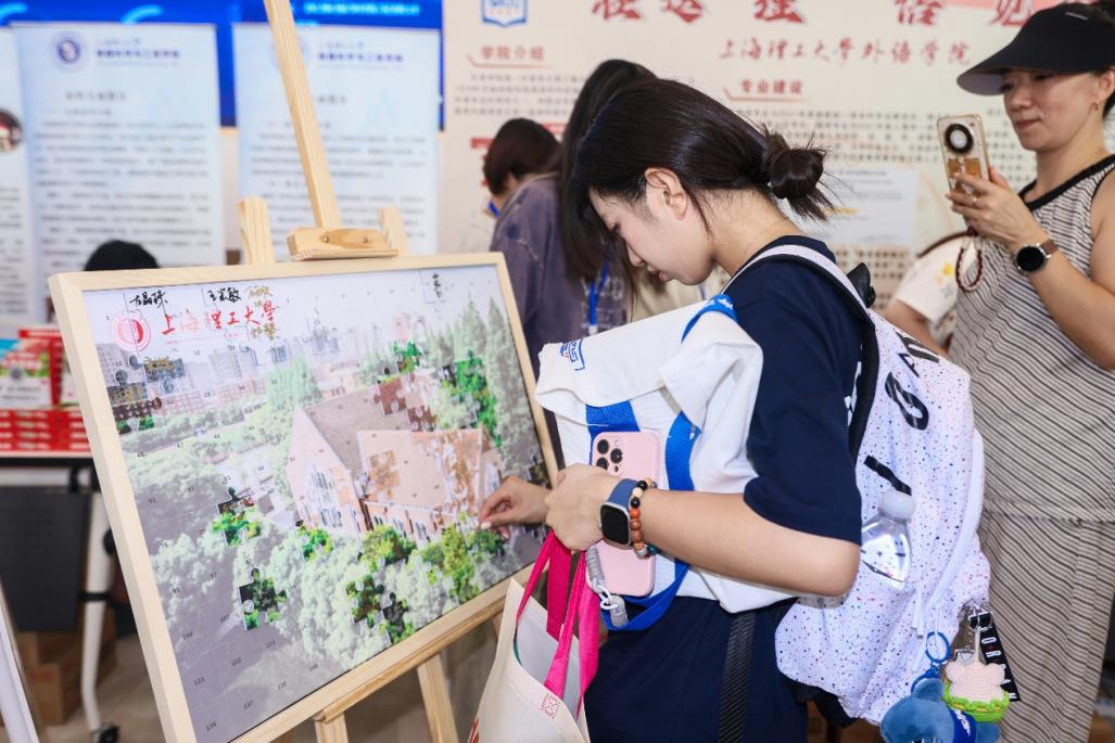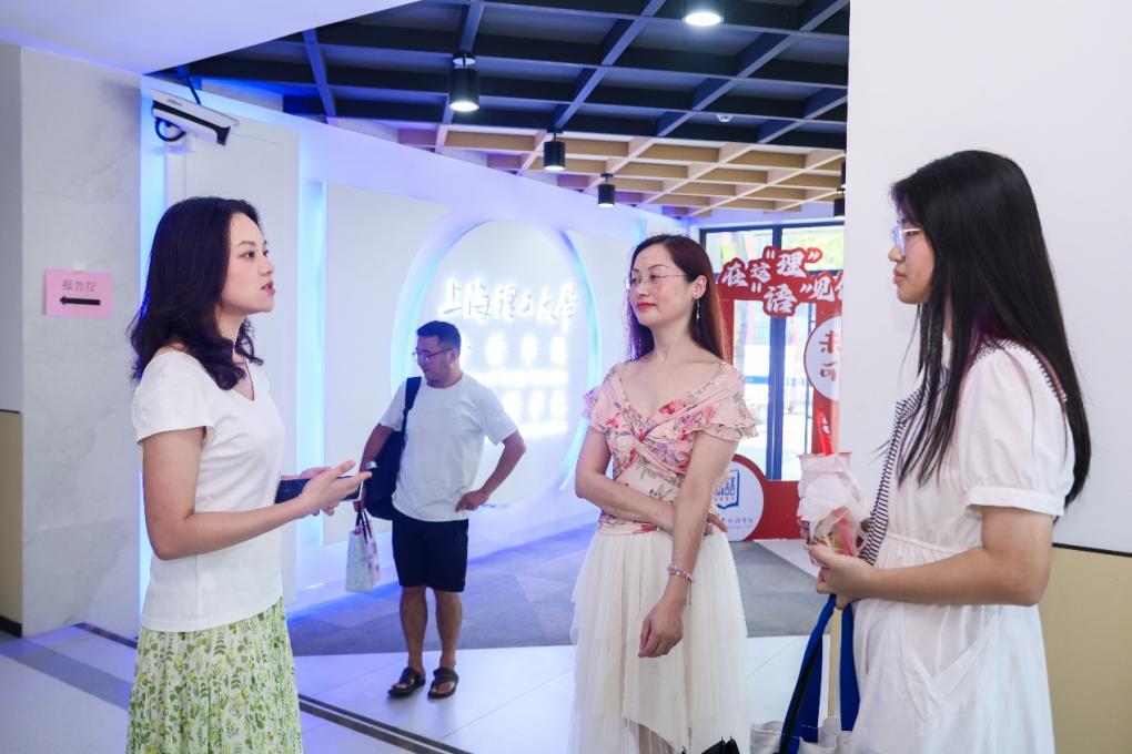 朝8時、軍工路580号学生活動センター1階に設けられた外国語学院の新入生歓迎ブースはすでに整然と設営されていた。学院紹介パネル、専攻説明コーナー、インタラクティブフォトスポットが多くの新入生と保護者を引き寄せていた。学院が心を込めて準備した「新入生ウェルカムバッグ」も学生たちへの深い祝福と期待を込めて、順次配布された。午後1時からは外国語ビルが公開され、八方から訪れた学生たちを迎え入れた。1階の内と外で念入りに設置された歓迎パネルとボードが、新入生と保護者にとって格好のフォトスポットとなり、「上理外語学院の一員」となった最初の日の気持ちを記録するため、彼らは写真を撮っていた。