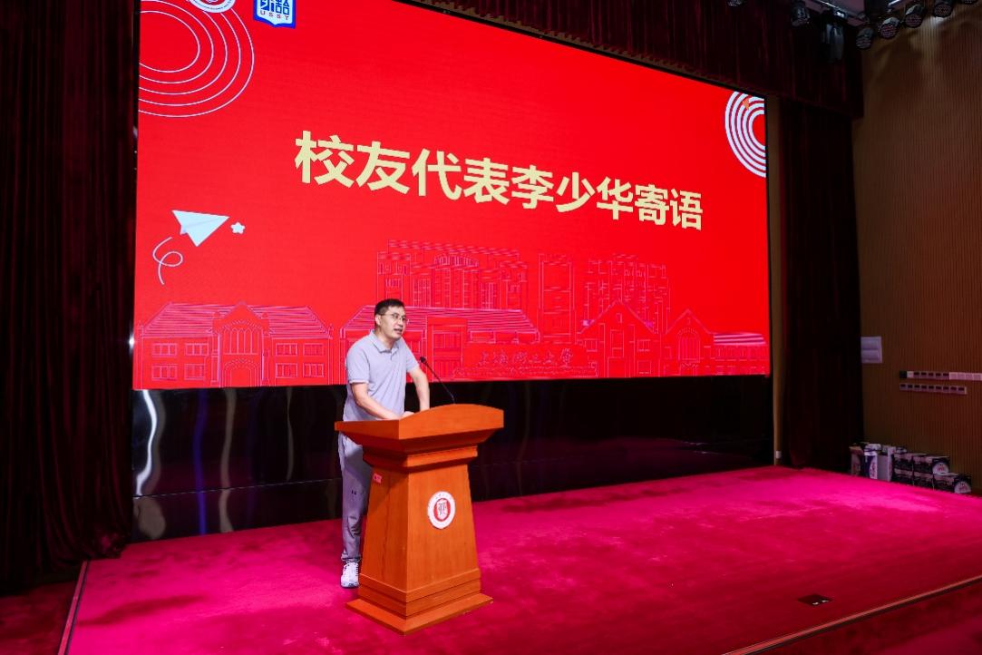 この式典では、上海理工大学外国語学院2000年卒(言語学専攻)の傑出した校友であり、今は上海水成環境保護テック株式会社の董事長である李少華氏が、「業界の新入り」から「業界標準の設定者」になるまでの事業史を母校の人々と共有してくれた。彼は後輩たちに向け、「担える責任の大きさに応じ、多くの人々があなたの夢を支えてくれる」と激励の言葉を贈り、学生時代を大切にしつつ、誠実さと専門性を備えた人間として成長するよう呼びかけた。また会場では全国各地の卒業生たちから送られたビデオメッセージが上映され、山海を越えて集まった彼らの温かい言葉と心のこもった祝福が、新入生を力強く励ましてくれた。