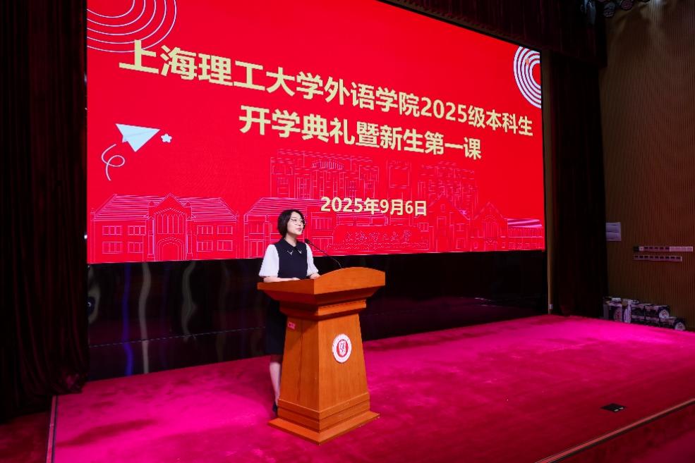 実りの秋が訪れ、新たな出発の時が来た。2025年9月6日、上海理工大学外国語学院2025年度新入生たちの歓迎活動および新入生向けガイダンスが、本学南キャンパス国合棟の報告ホールにて盛大に開催された。学院の党務・行政責任者、教員代表、卒業生代表、新入生、および保護者代表らが一堂に会し、厳粛だが温もりあふれるこの歓迎活動を見守った。
