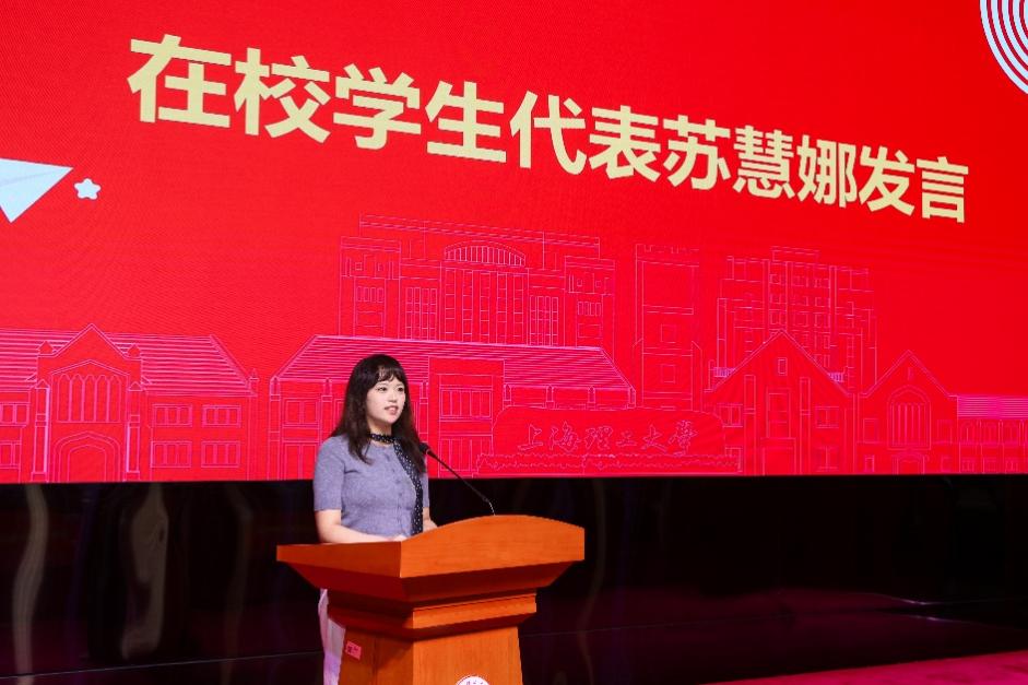 校学生会執行主席を務める2023年度英語専攻の蘇慧娜氏は、迷いから確信へ至った自身の成長経験を共有してくれ、新入生に対して恐れず挑戦し、失敗から学ぶことの大切さを訴えかけた。新入生代表の譚歆桐氏は、大学生活への憧れと誓いを表明し、居並ぶ人々に「言葉の伝達者となるだけでなく、文化を解読する人材となろう」と呼びかけた。